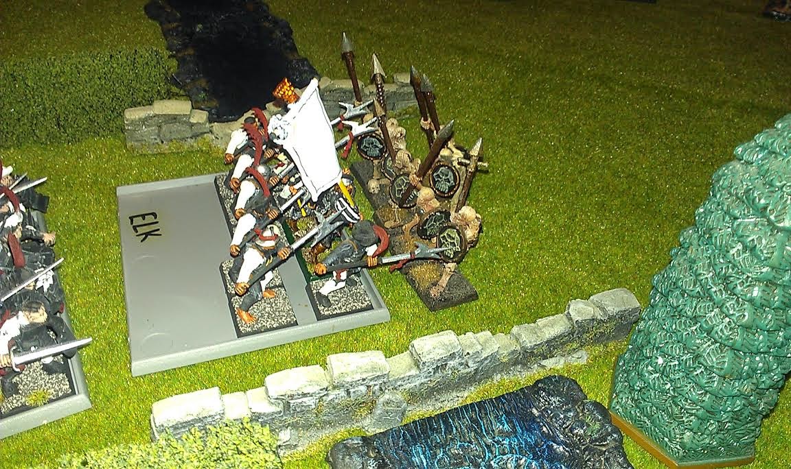 The Mercs. break and run as the Muskets fall to the spears of the skeletons!